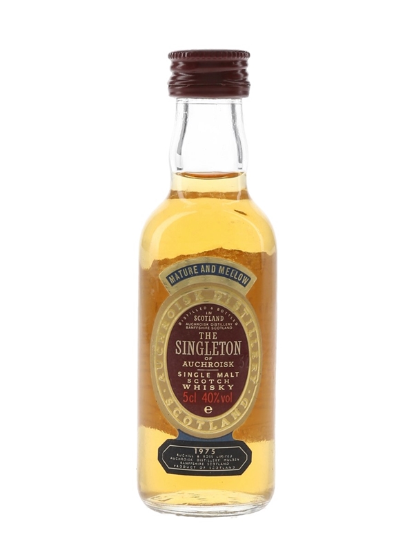 A miniature bottle of The Singleton of Auchroisk 1975 Single Malt Scotch Whisky.