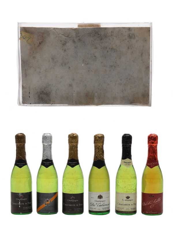 The Alpa set contains six tiny novelty bottles of Champagne. This set was specially bottled for Malcom Cowen.