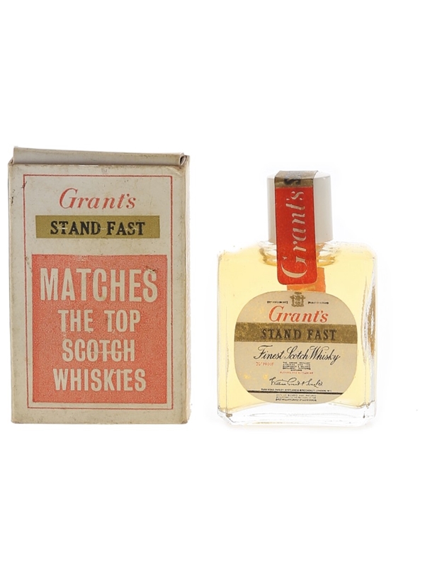 A tiny novelty bottle of Grant's Stand Fast Blended Scotch Whisky.