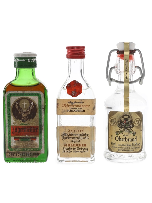 Jagermeister, Kirschwasser & Obstbrand Bottled 1970s & 1980s 3 x 3cl-5cl