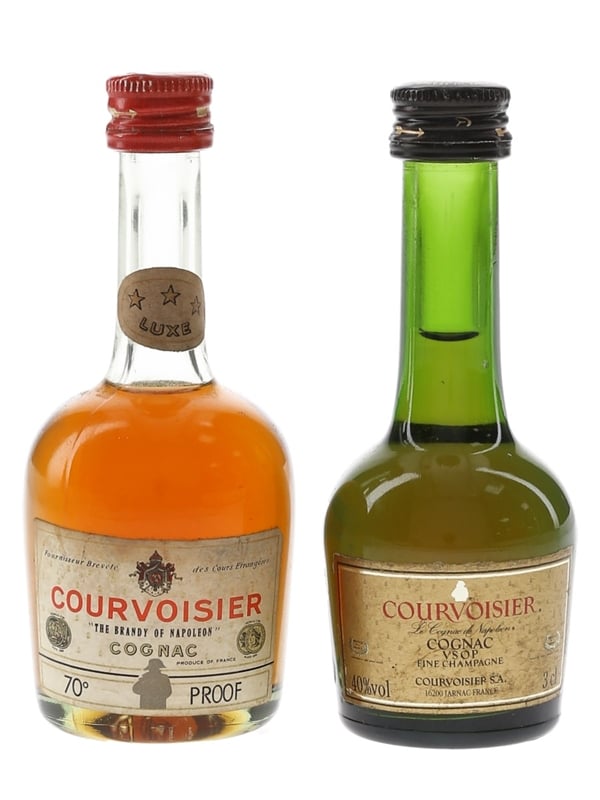 This lot contains two miniature bottles of Courvoisier Cognac. We estimate these were bottled in the 1970s and 1980s:
