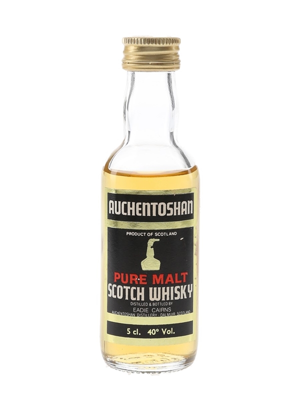 A miniature bottle of Auchentoshan Pure Malt Scotch Whisky. This was distilled and bottled by Eadie Cairns, we estimate in the 1980s.