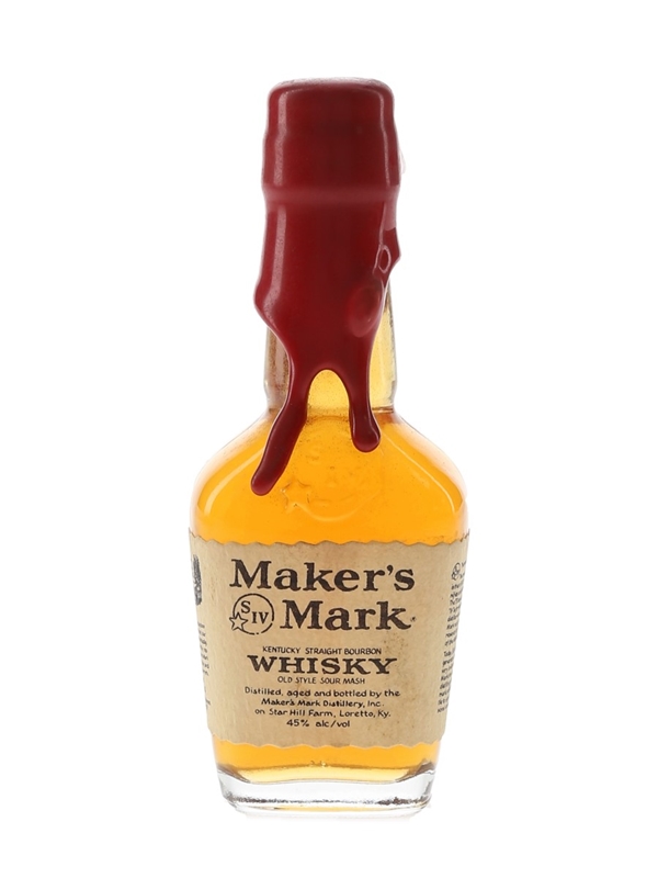 A miniature bottle of Maker's Mark Old Style Sour Mash Kentucky Straight Bourbon Whisky.