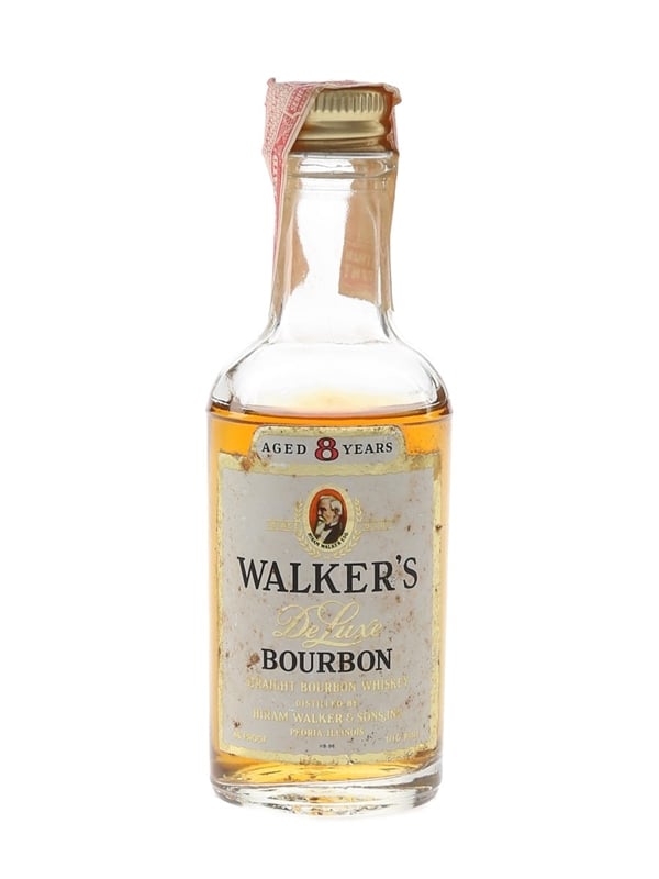 An old bottling of Walker's Deluxe 8 Year Old Kentucky Straight Bourbon Whiskey, a brand owned by Hiram Walker. The bottling code indicates this bottle was made in 1971.