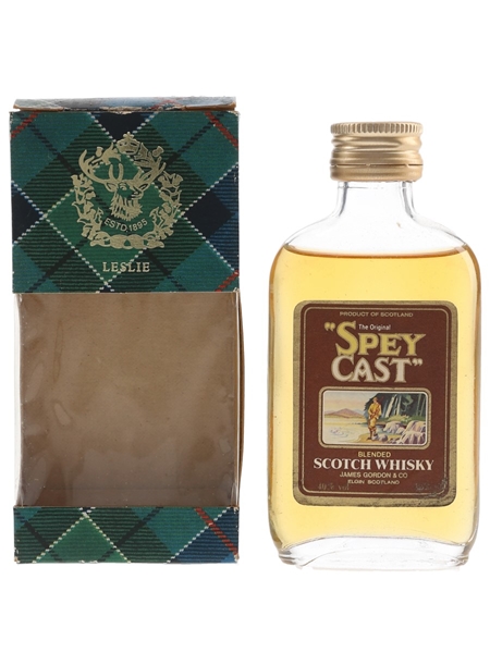 A miniature bottle of Spey Cast The Original Blended Scotch Whisky, bottled by James Gordon & Co. We estimate this was bottled in the 1980s.