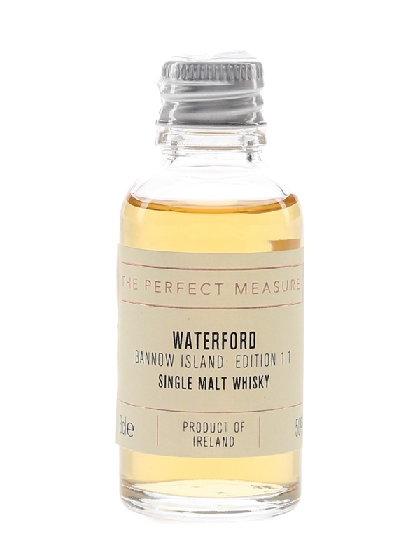 A 3cl sample bottle of Waterford Bannow Island Edition 1.1 Irish Single Malt Whisky, The Perfect Measure, bottled by The Whisky Exchange.