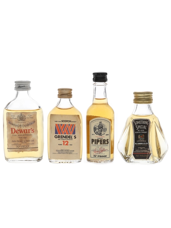 Dewar's, Grendel's, Hundred Pipers & Something Special Bottled 1970s 4 x 3.7cl-5cl