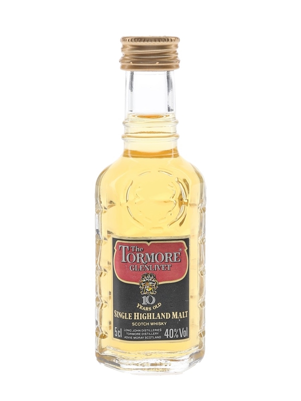 A miniature bottle of The Tormore Glenlivet 10 Year Old Highland Malt Scotch Whisky. We estimate this was bottled in the 1980s.