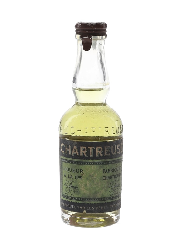 A miniature bottle of Green Chartreuse liqueur produced in France. We estimate this was bottled between 1956 and 1964.