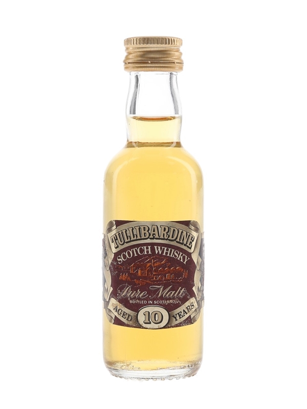 A miniature bottle of Tullibardine 10 Year Old Pure Malt Scotch Whisky. We estimate this was bottled in the 1980s.