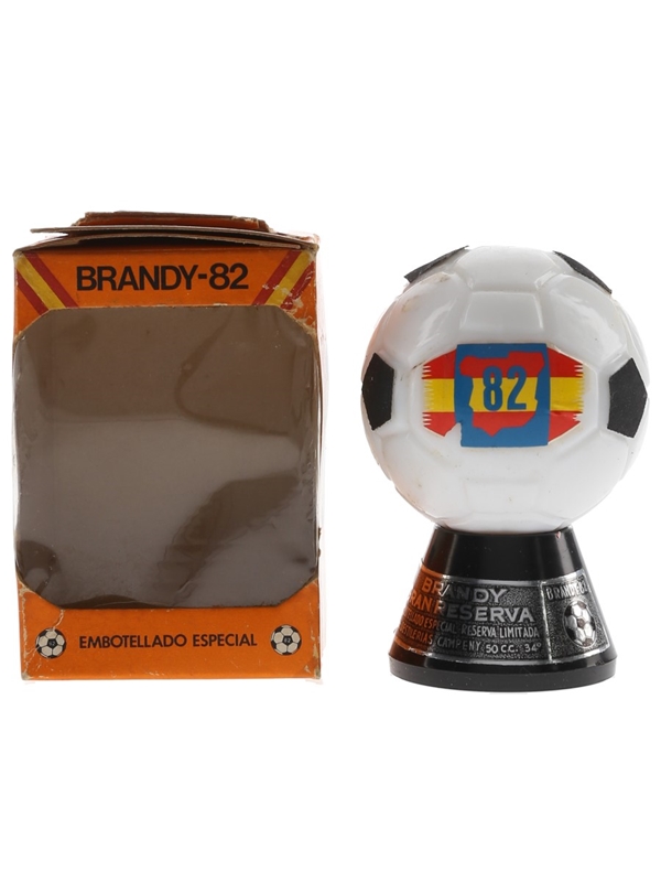 A miniature bottle of Campeny Brandy 82 Gran Reserva, presented in a football shaped box. This was bottled to celebrate Spain 1982 FIFA World Cup.