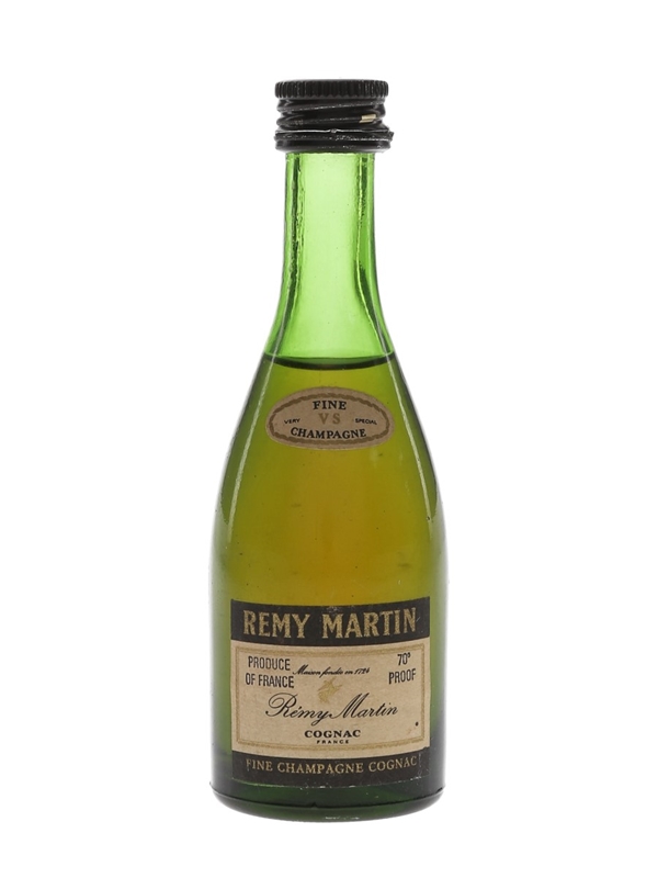 A miniature bottle of Rémy Martin VS Fine Champagne Cognac. We estimate this was bottled in the 1970s.