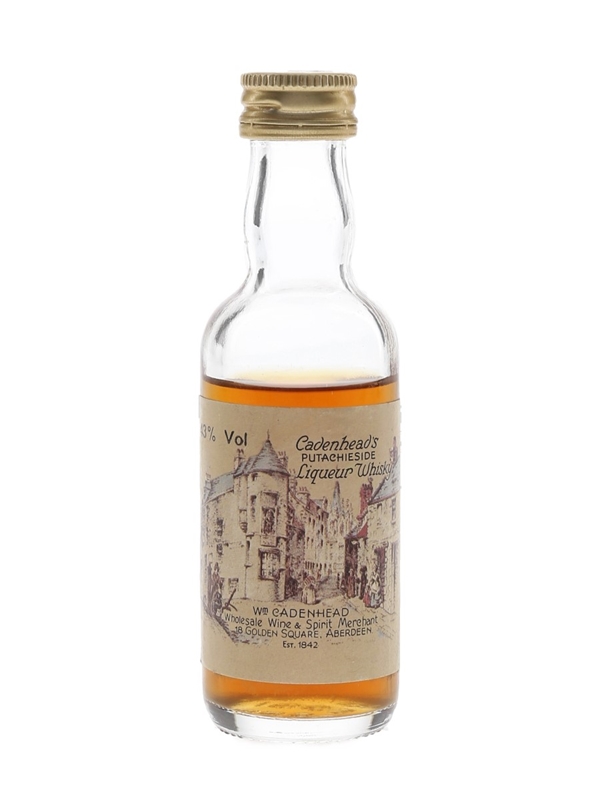 A miniature bottle of Cadenhead's Putachieside Liqueur Whisky. We estimate this was bottled in the 1980s.