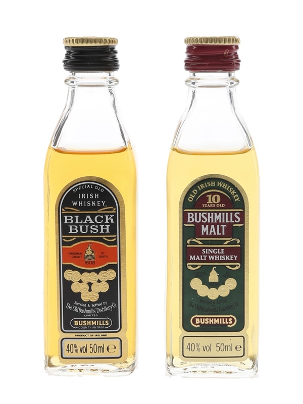 Black Bush & Bushmills 10 Year Old Bottled 1980s 2 x 5cl / 40%