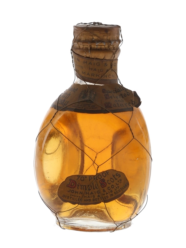 A miniature bottle of Haig's Dimple Old Blended Scotch Whisky, sealed with a spring cap closure. We estimate this was bottled in the 1950s.