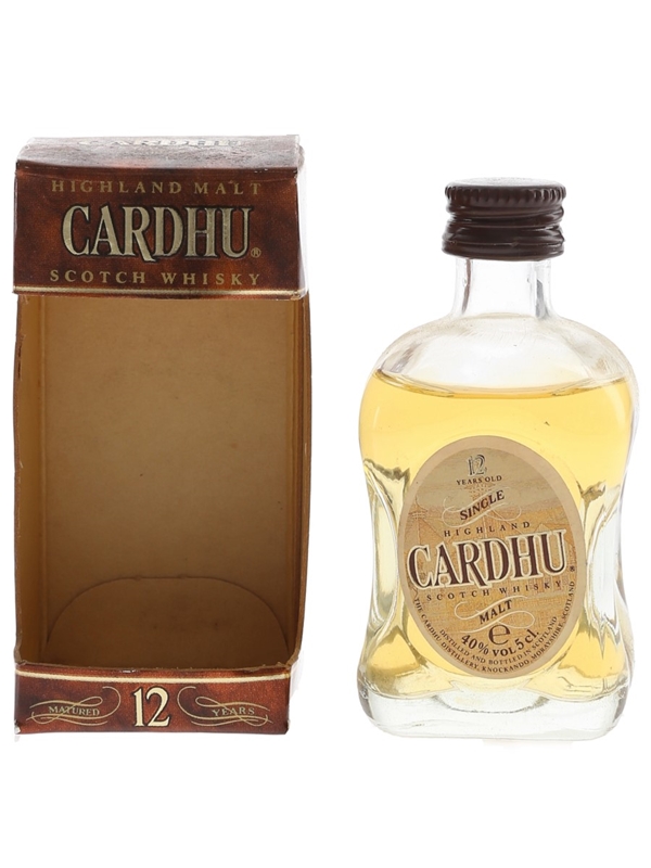 A miniature bottle of Cardhu 12 Year Old Single Highland Scotch Whisky. We estimate this was bottled in the 1990s.