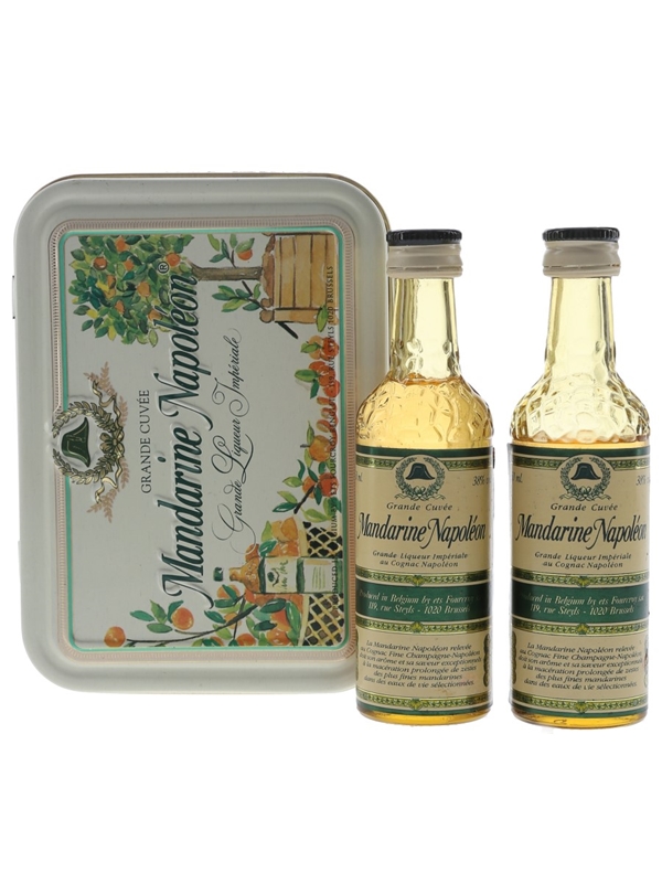 A gift set from Ets Fourcroy containing two miniature bottles of Mandarine Napoleon Grande Cuvee Liqueur Impériale presented in the original presentation box.