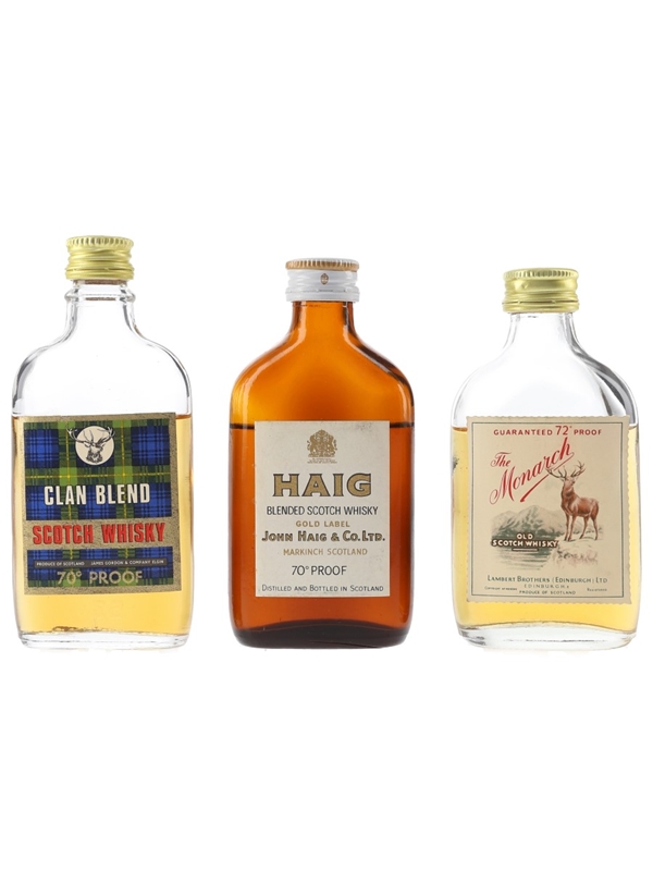 Clan Blend, Haig Gold Label & The Monarch Bottled 1960s-1970s 3 x 5cl