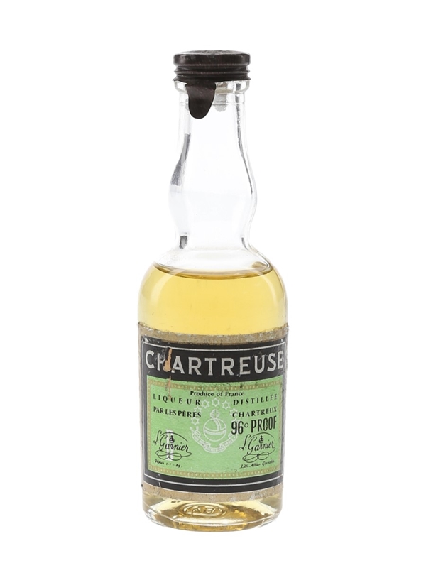 A miniature bottle of Green Chartreuse liqueur from France. We estimate this was bottled in the 1960s to 1970s.