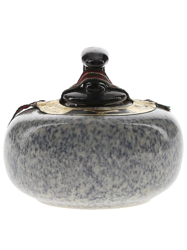 A miniature bottle of Beneagles Scotch Whisky from Peter Thomson (Perth) Ltd. presented in a ceramic decanter in the shape of a curling stone.