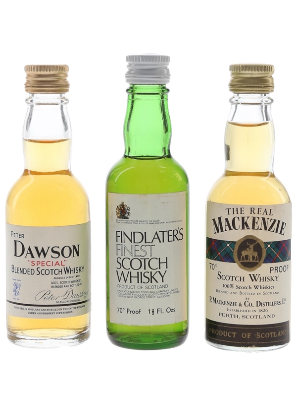 Findlater's, Peter Dawson & Real Mackenzie Bottled 1970s 3 x 4.7cl-5cl