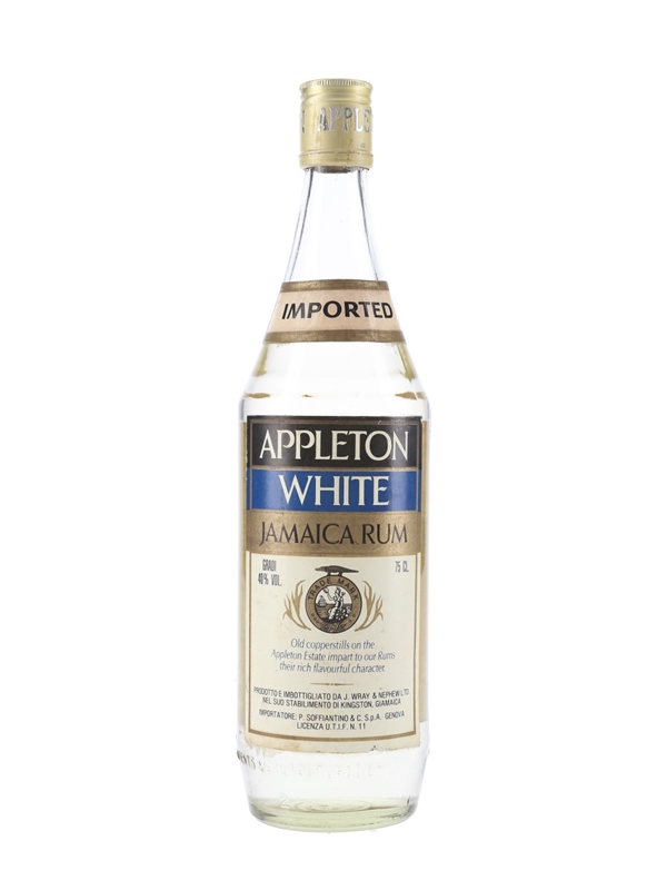 A bottle of Appleton White Jamaica rum, produced by Wray & Nephew and bottled for Italian importer Soffiantino. We estimate this was bottled in the 1970s.