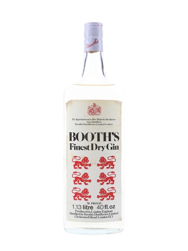 A 113cl bottle of Booth's Finest Dry Gin, distilled by Booth's Distilleries Limited, London. We estimate this was bottled in the late 1970s.