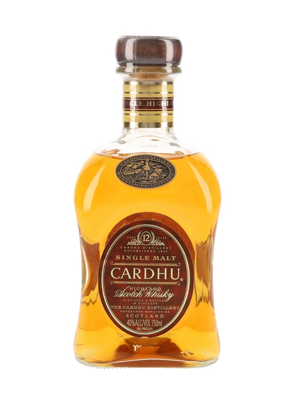 A bottle of Cardhu 12 Year Old Single Malt Scotch Whisky. This was imported to the US market by Schieffelin & Somerset Co.