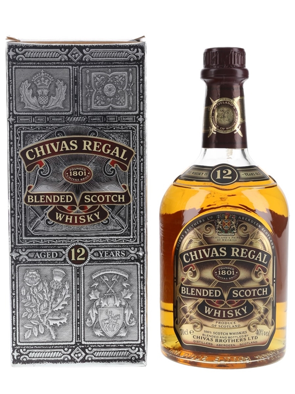 A bottle of Chivas Regal 12 Year Old Blended Scotch Whisky. This was bottled for the Spanish market and imported by Sandeman, we estimate in the 1990s.