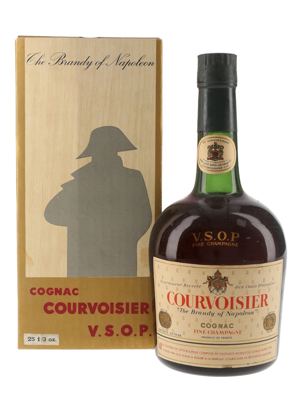 A bottle of Courvoisier VSOP Fine Champagne Cognac, 'The Brandy of Napoleon'. We estimate this was bottled in the 1970s.