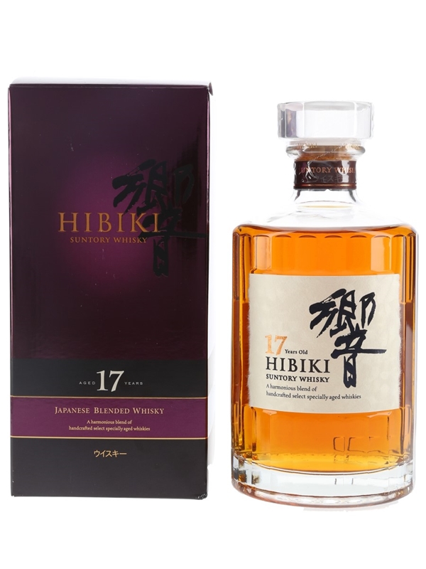 A bottle of Hibiki 17 Year Old Suntory Japanese blended whisky.
