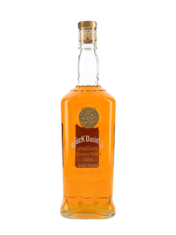 A litre bottle of Jack Daniel's Tennessee Whiskey released to celebrate the gold medal won in 1905 in Liege, Belgium.