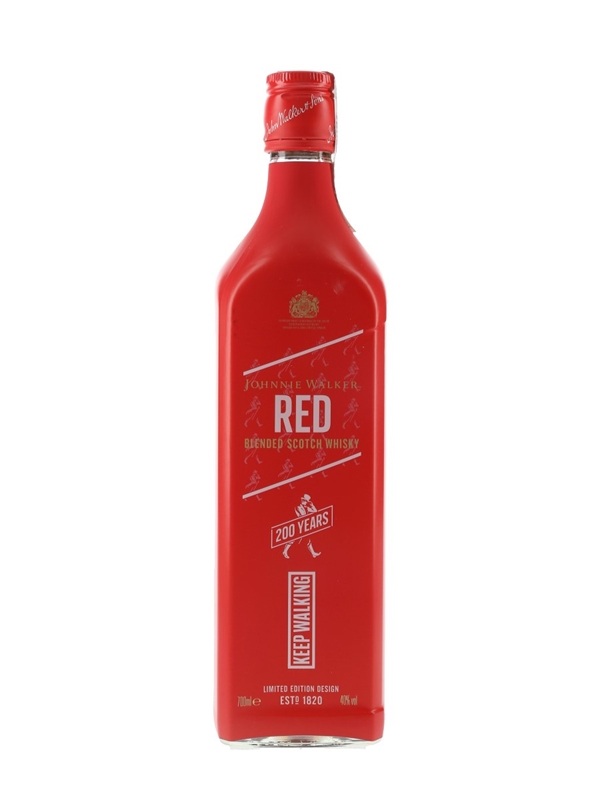 A bottle of Johnnie Walker Red Label Blended Scotch Whisky. This was released in 2020 to celebrate the 200th anniversary of the brand.