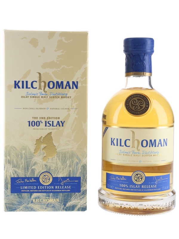 The 2nd edition bottle of Kilchoman 100% Islay Single Malt Scotch Whisky. This was matured in a combination of fresh and refill bourbon barrels for three years.