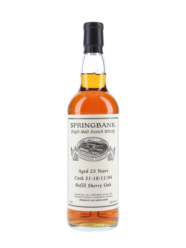 A private cask bottling of Springbank 25 Year Old Single Malt Scotch Whisky. This was distilled in 1994, matured in a refill sherry oak and bottled at 50.4%. The bottling code indicates this was bottled in 2020.