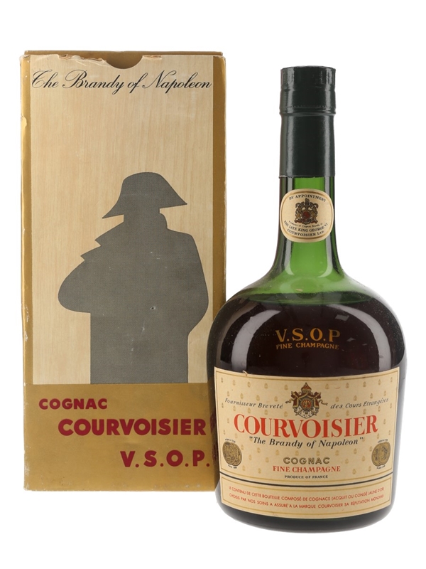 A bottle of Courvoisier VSOP Cognac Fine Champagne, 'The Brandy of Napoleon'. We estimate this was bottled in the 1960s to 1970s.