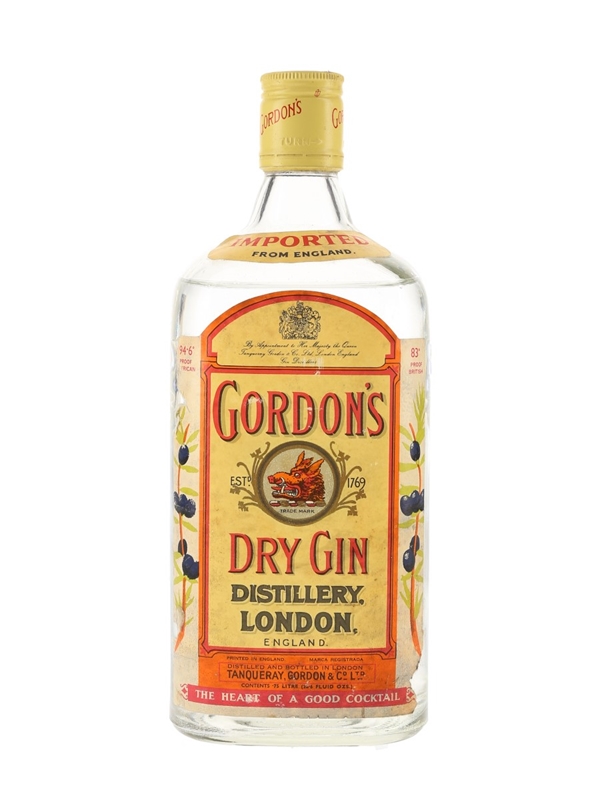 A bottle of Gordon's Dry Gin produced at Tanqueray Gordon & Co. Ltd. We estimate this was bottled in the 1970s.