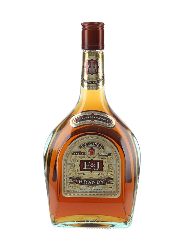 A bottle of E & J Original Brandy, produced and bottled by E & J Distillers, Modesto, California.