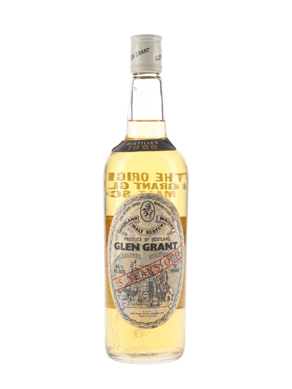 A bottle of Glen Grant 5 Year Old Highland Malt Scotch Whisky. This was distilled in 1966 and bottled by Glen Grant Company Ltd. We estimate this was bottled in the 1970s.