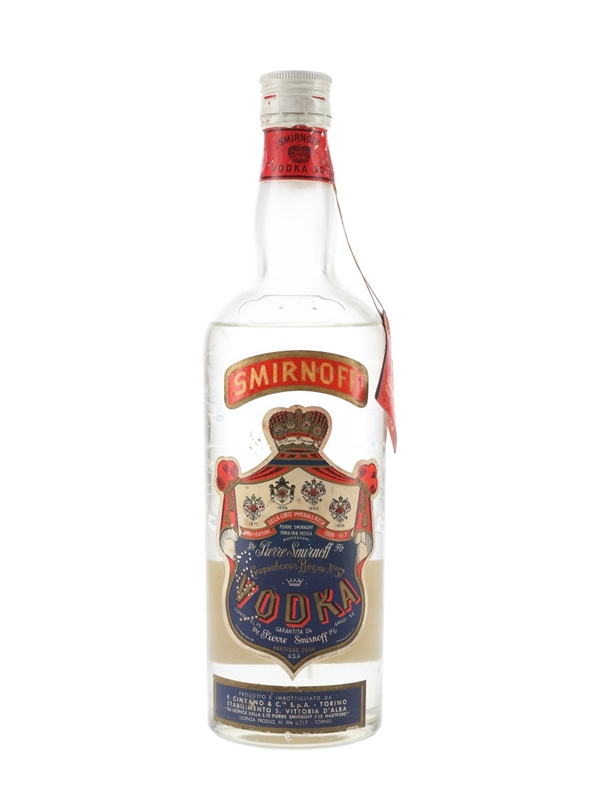 A bottle of Smirnoff Vodka, produced and bottled in Italy by Cinzano under license from Smirnoff, Harford. We estimate this was bottled in the 1970s.
