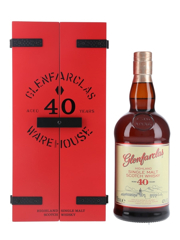 A bottle of Glenfarclas 40 Year Old Highland Single Malt Scotch Whisky.