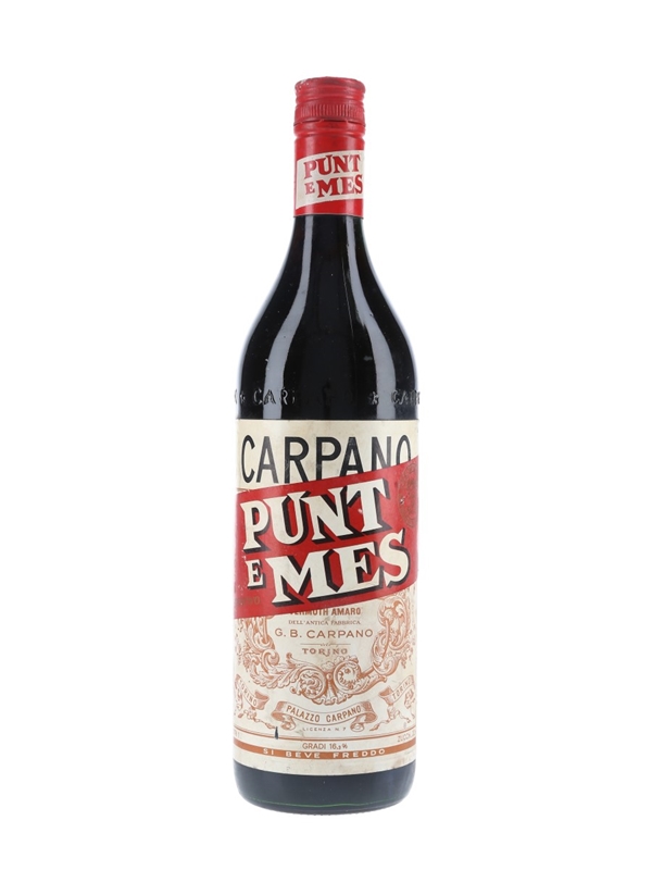 A litre bottle of Punt e Mes, the famously bitter red wine vermouth produced by Carpano in Turin, Italy. We estimate this was bottled in the 1970s.