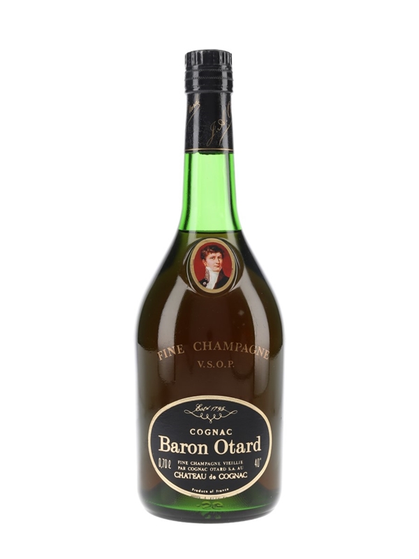 A bottle of Baron Otard Fine Champagne VSOP Cognac, produced at Chateau de Cognac. We estimate this was bottled in the 1970s.