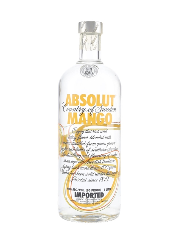A litre bottle of Absolut Mango Vodka from Sweden.