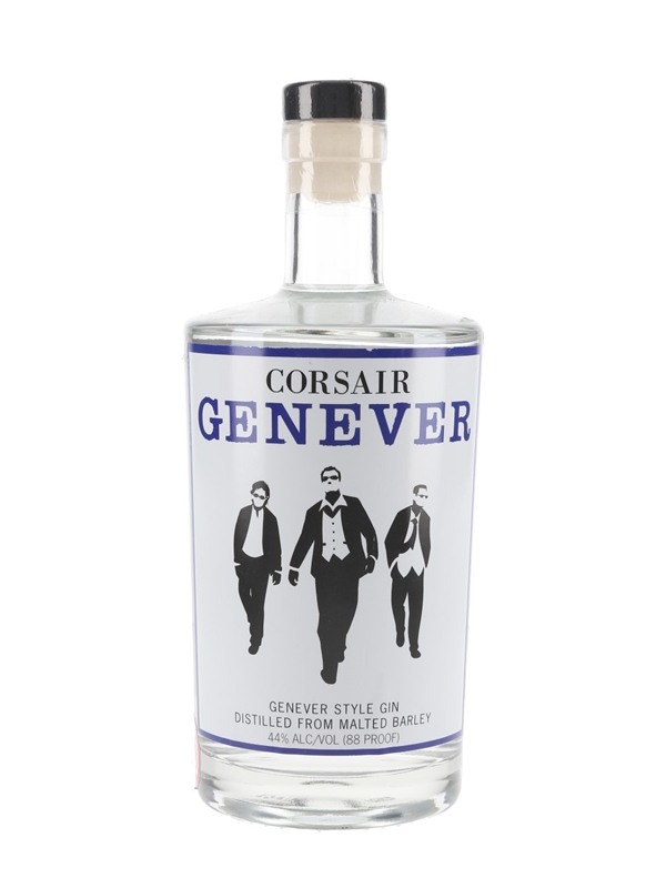 A bottle of Corsair Genever Style Gin from United States. This was distilled from malted barley, flavoured with juniper, ginger, orange peel and other botanicals, and bottled at 44% ABV.