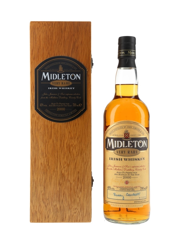 A bottle of Midleton Very Rare Irish Whiskey bottled in 2000. Every year since 1984, a new edition has been released in limited quantities.