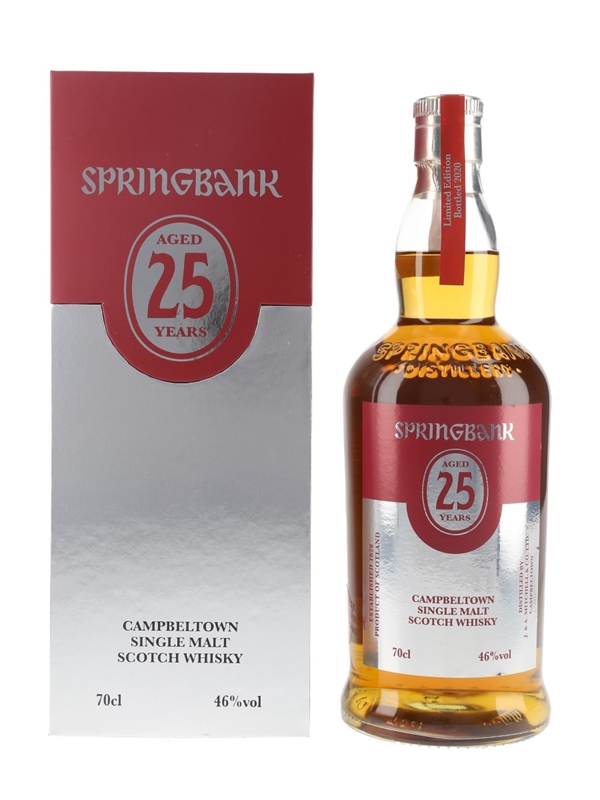 A limited edition bottle of Springbank 25 Year Old Campbeltown Single Malt Scotch Whisky, bottled in 2020.