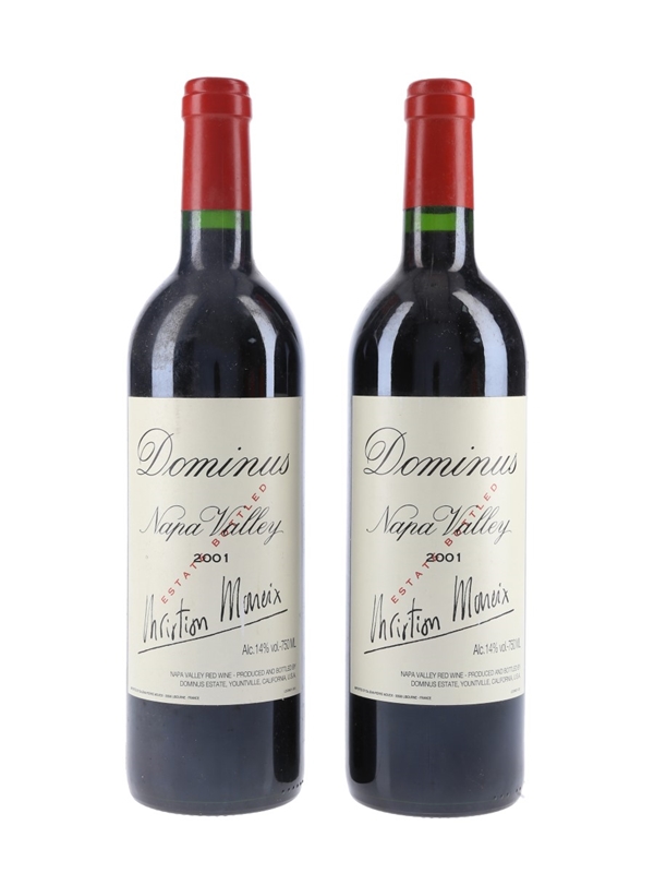 This lot contains two bottles of Dominus 2001 from Napa Valley, produced by Christian Moueix.