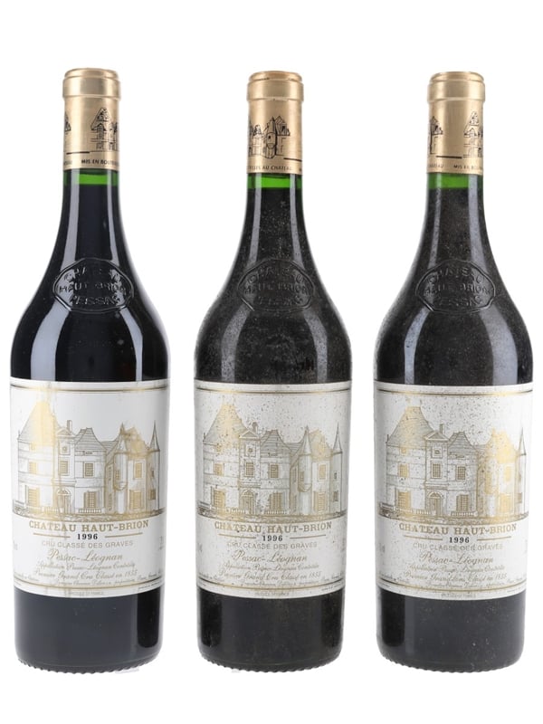 This lot contains three bottles of 1996 Château Haut-Brion from the Pessac-Léognan appellation in Bordeaux.