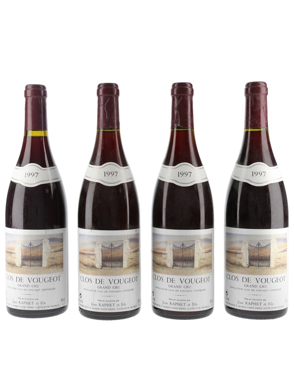 This lot contains four bottles of 1997 Clos de Vougeot Grand Cru, bottled by Jean Raphet et Fils.